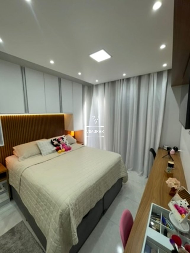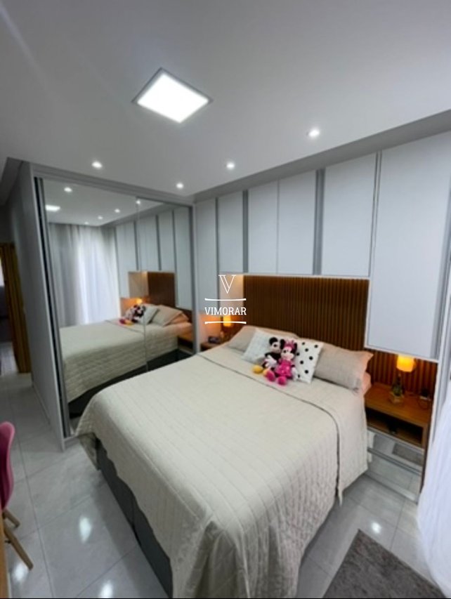 2 dormitórios amplos ( sendo 1 suíte com sacada) 2 vagas de garagem 2 banheiro Sala de Estar Cozinha integrada com sala de jantar Área de serviço coberta Área gourmet com churrasqueira Piscina