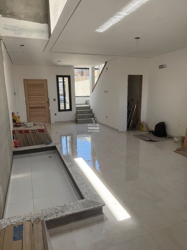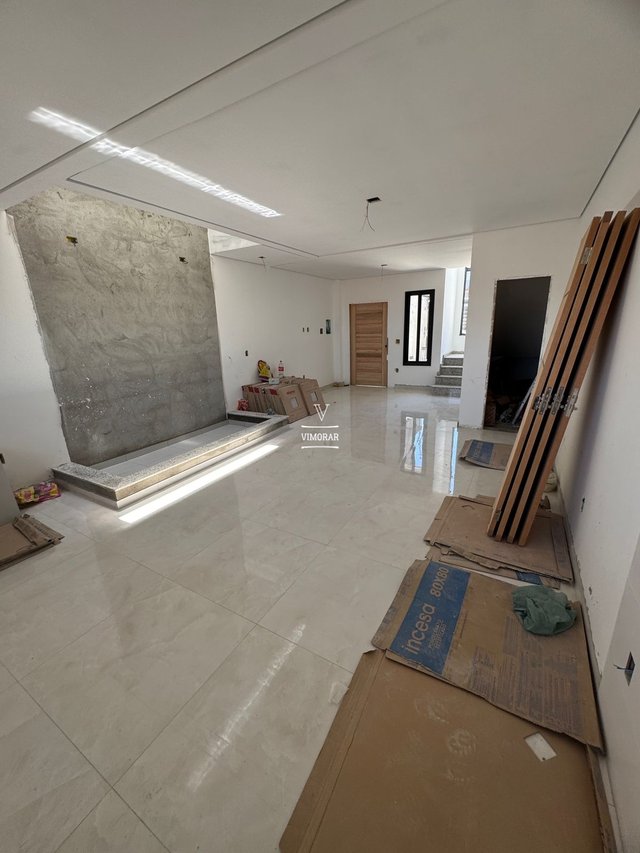 Sobrado novo, nunca habitado, com 3 suítes espaçosas, 4 vagas de garagem e acabamento de alto padrão.