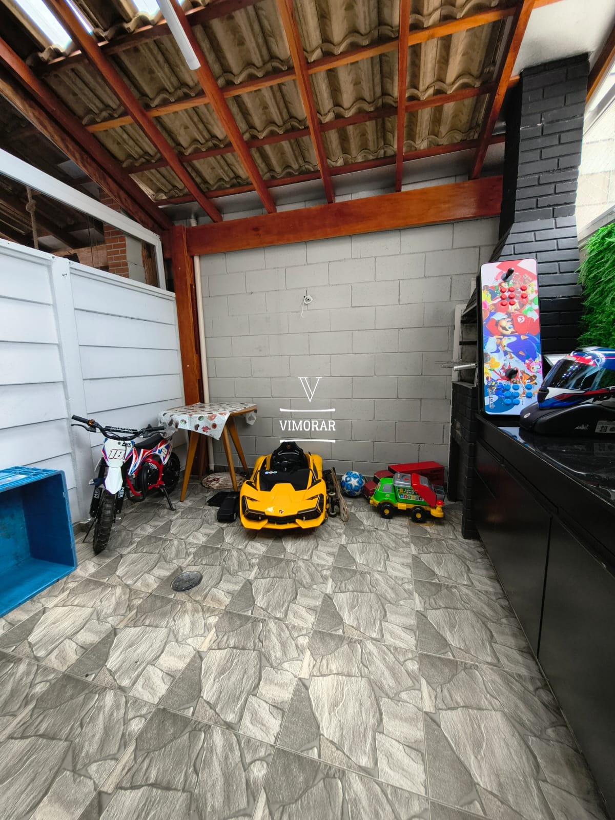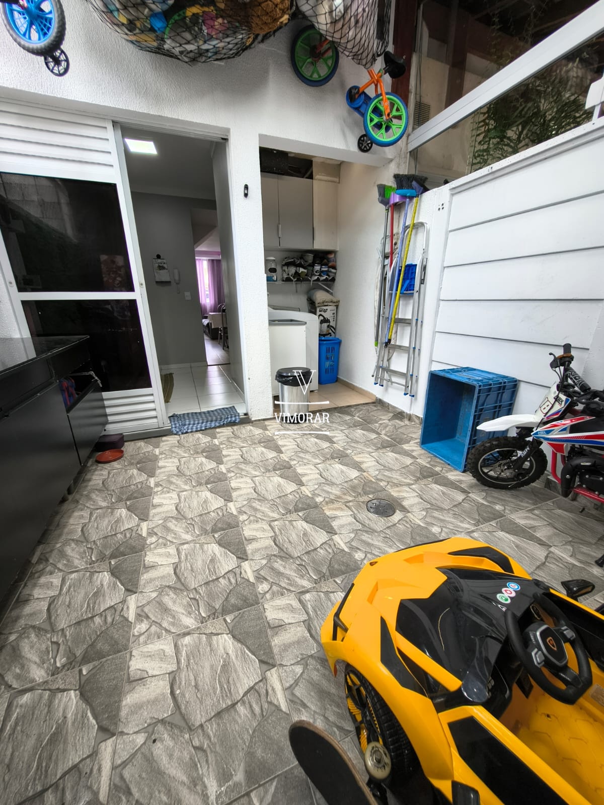 2 dormitórios com planejados 1 vaga fixa 1 banheiro + 1 Lavabo Cozinha com armário planejado Sala com Rack planejado Quintal com telhado Lavanderia Coberta